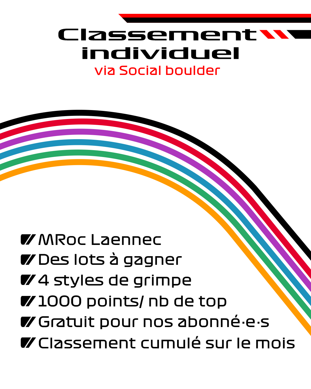 Classement individuel disponible sur Social Boulder, inscription obligatoire sur la page du contest. 🥇